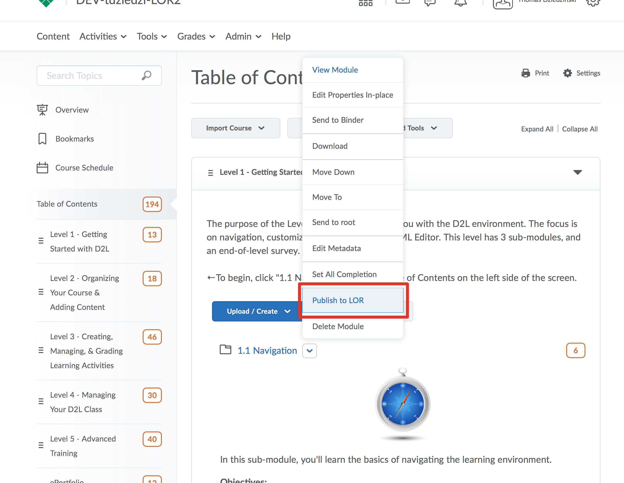 Step 3Click the “Action” button next to the title of the object you wish to publish |