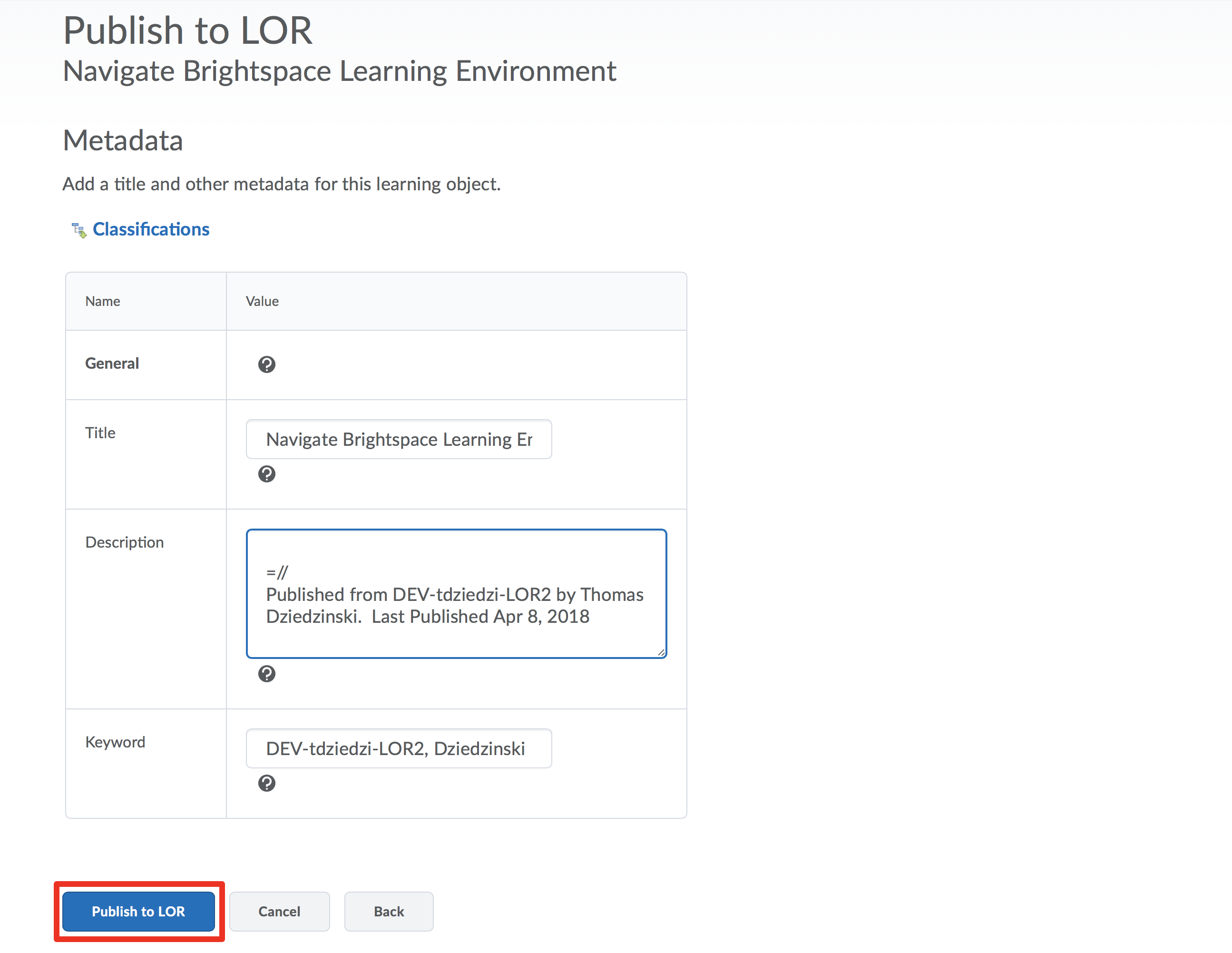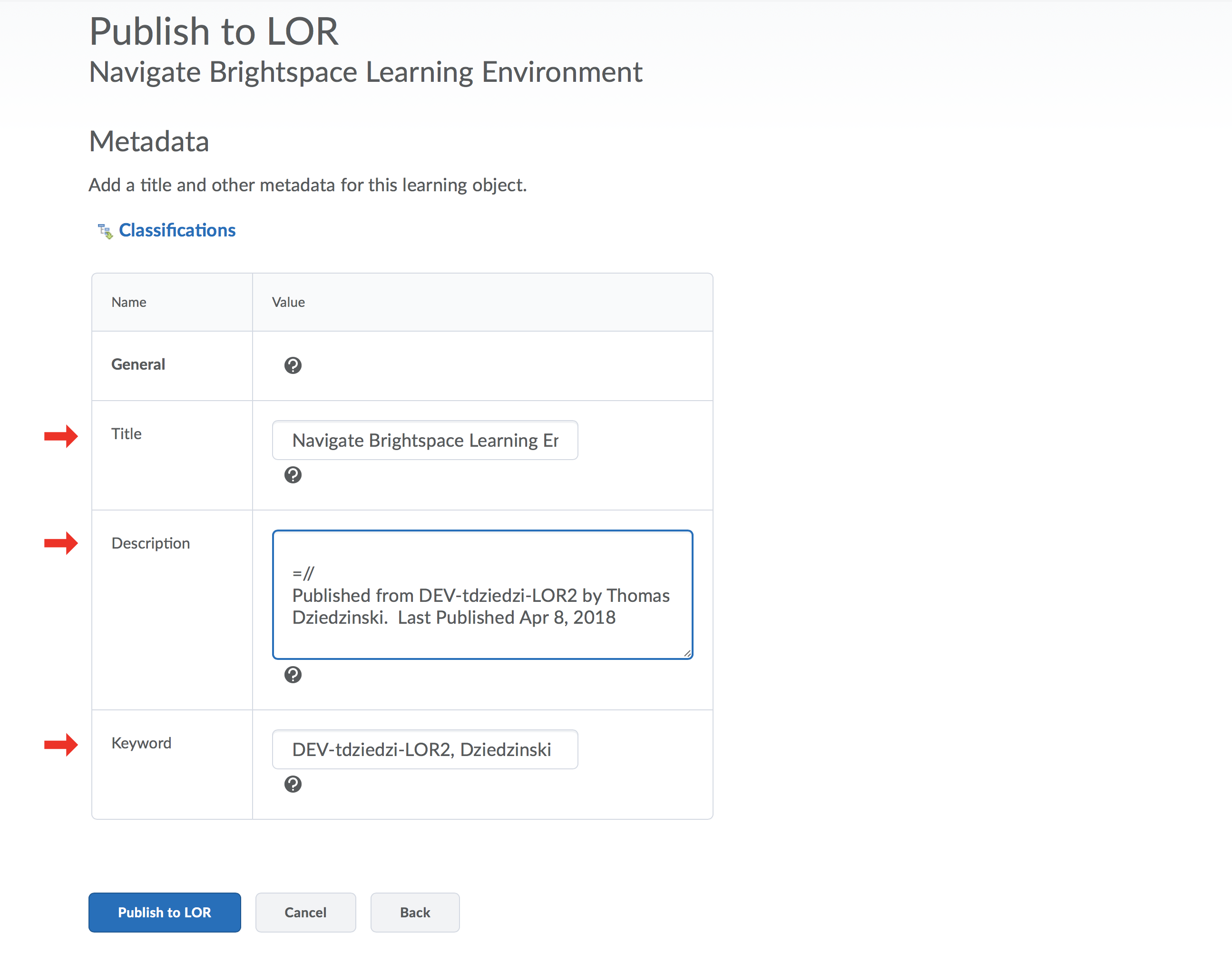 Step 8Fill out the required metadata fields including: title, description, and keywords that describe and categorize your learning object.